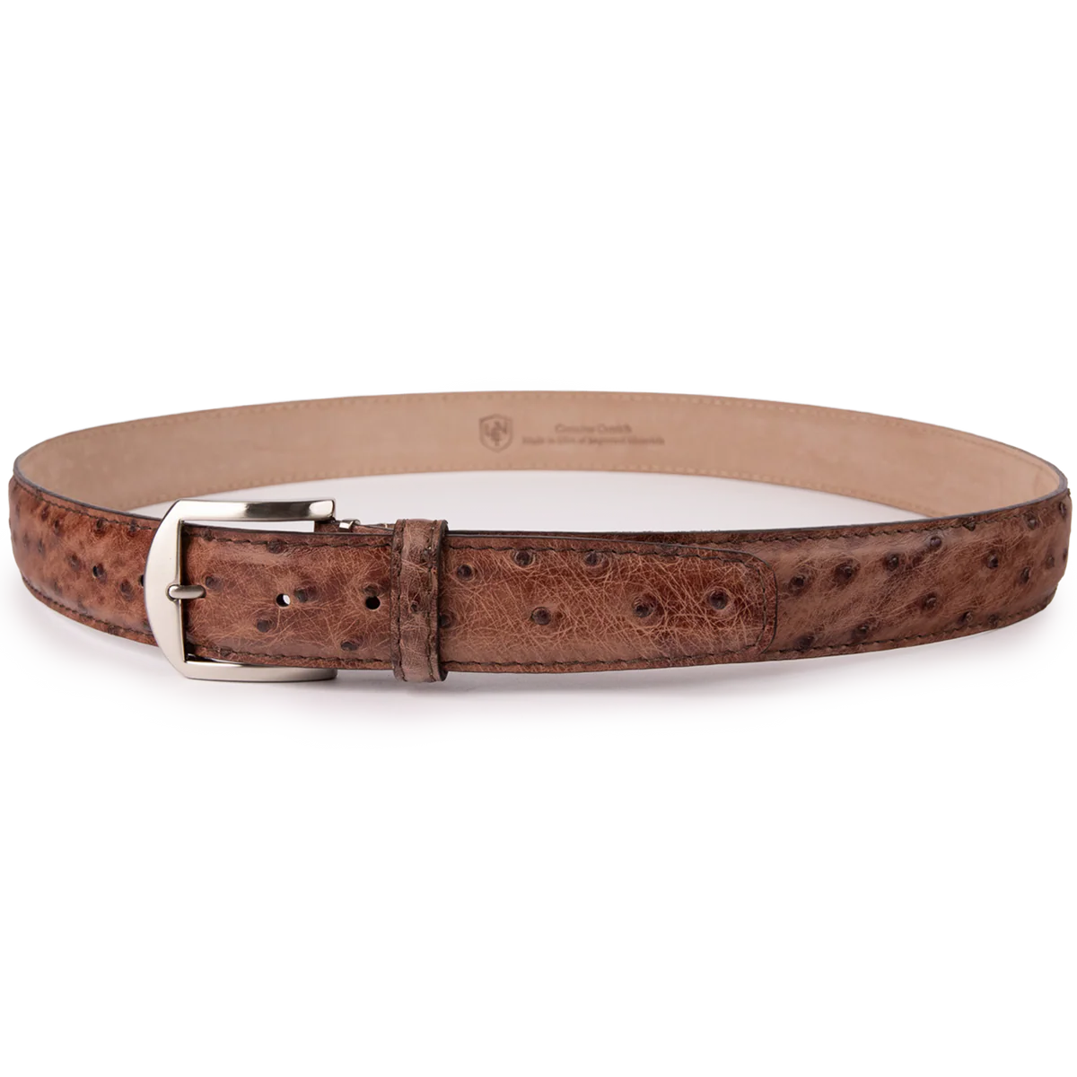Our 40 millimeter Genuine Ostrich styled in tobacco with matching edge and border stitch.Tanned in South Africa, this classic belt is perfectly at home with jeans or your favorite dress slacks.