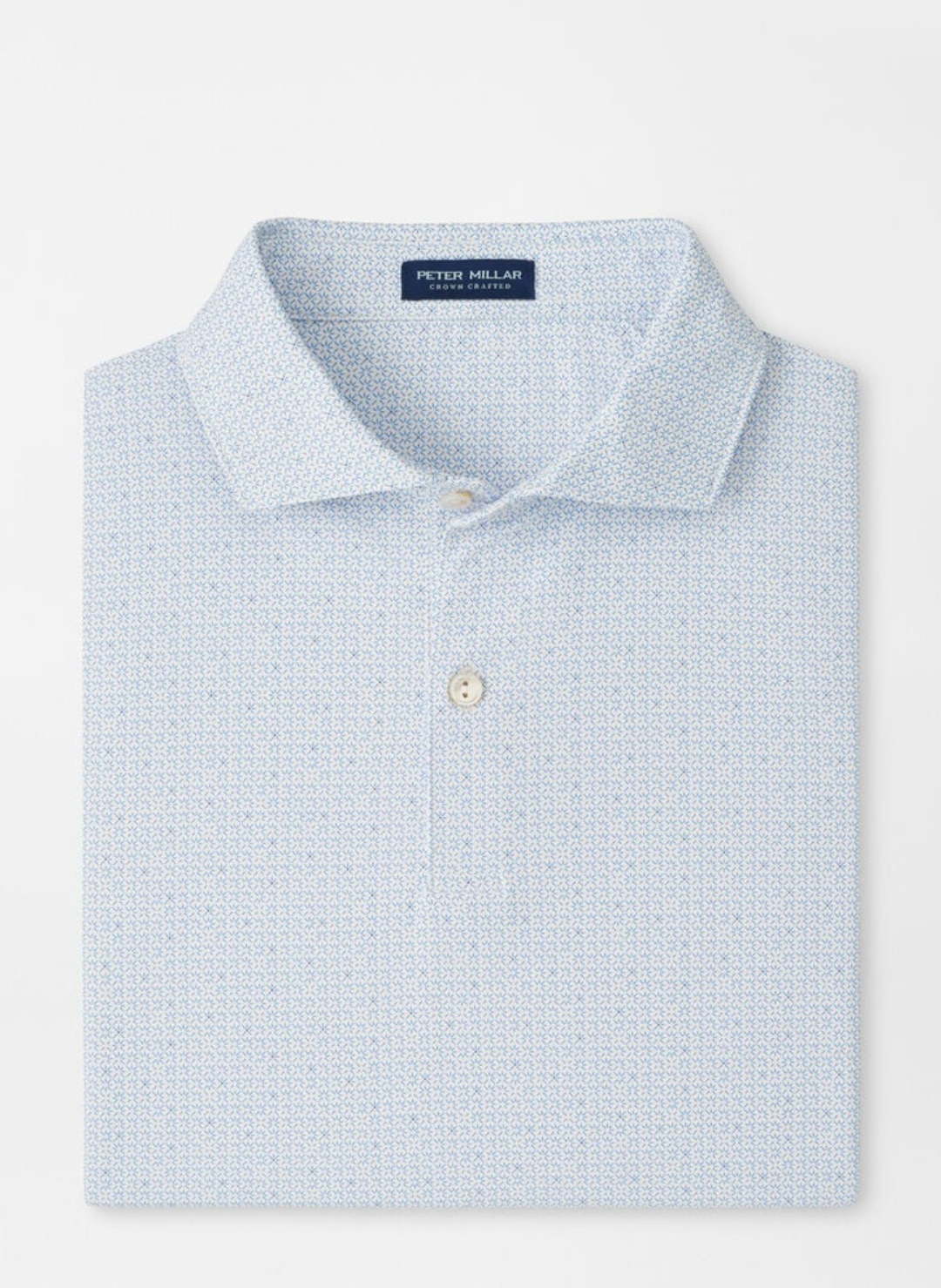 With clean style and exceptional comfort, our Crown Crafted jersey polos bring a soft, plush feel with wicking, four-way stretch, easy-care and UPF 50+ sun protection. This shirt features a custom-designed geometric print for added style. Finished with a spread collar and detailed with mother-of-pearl buttons.
