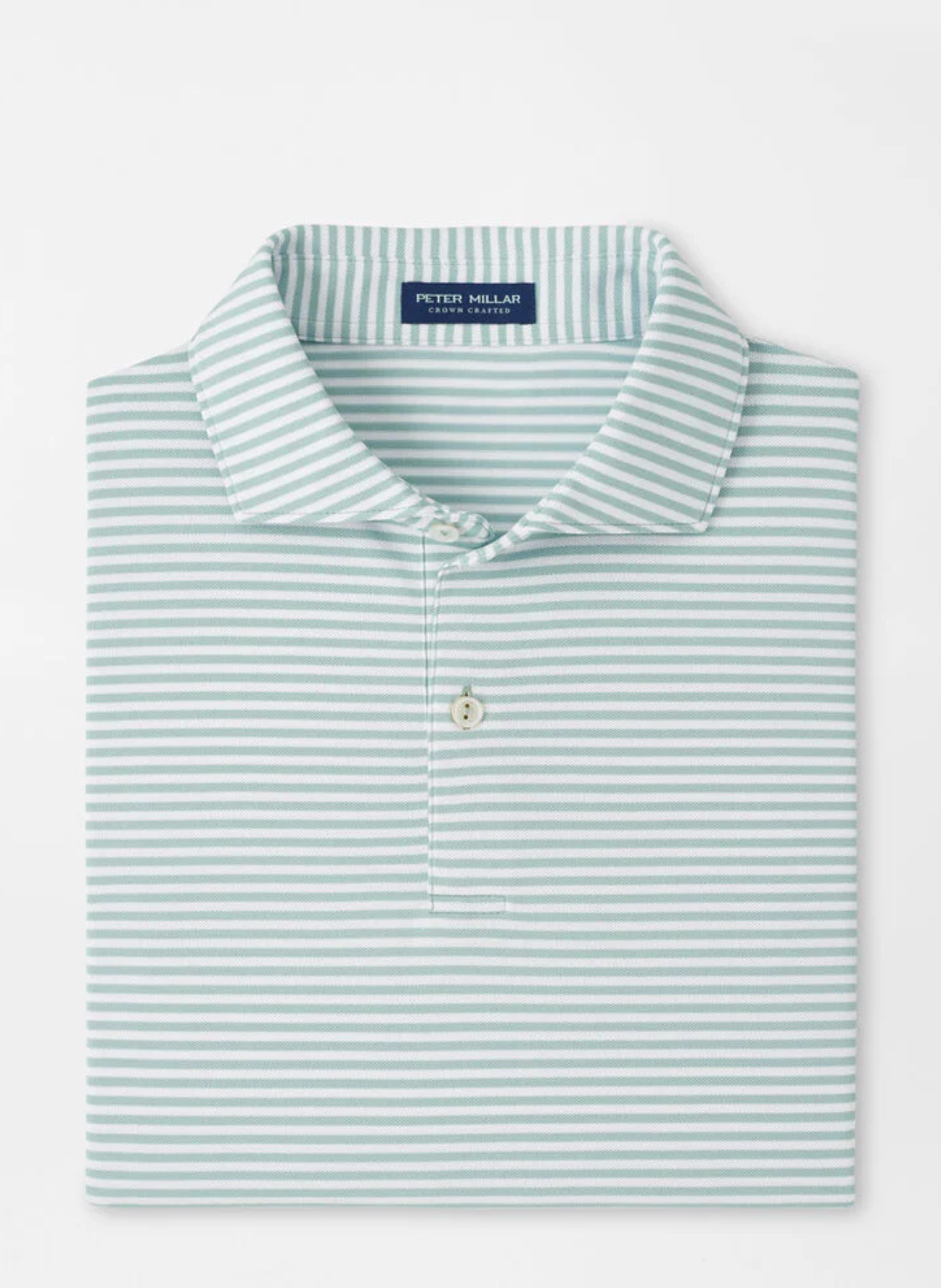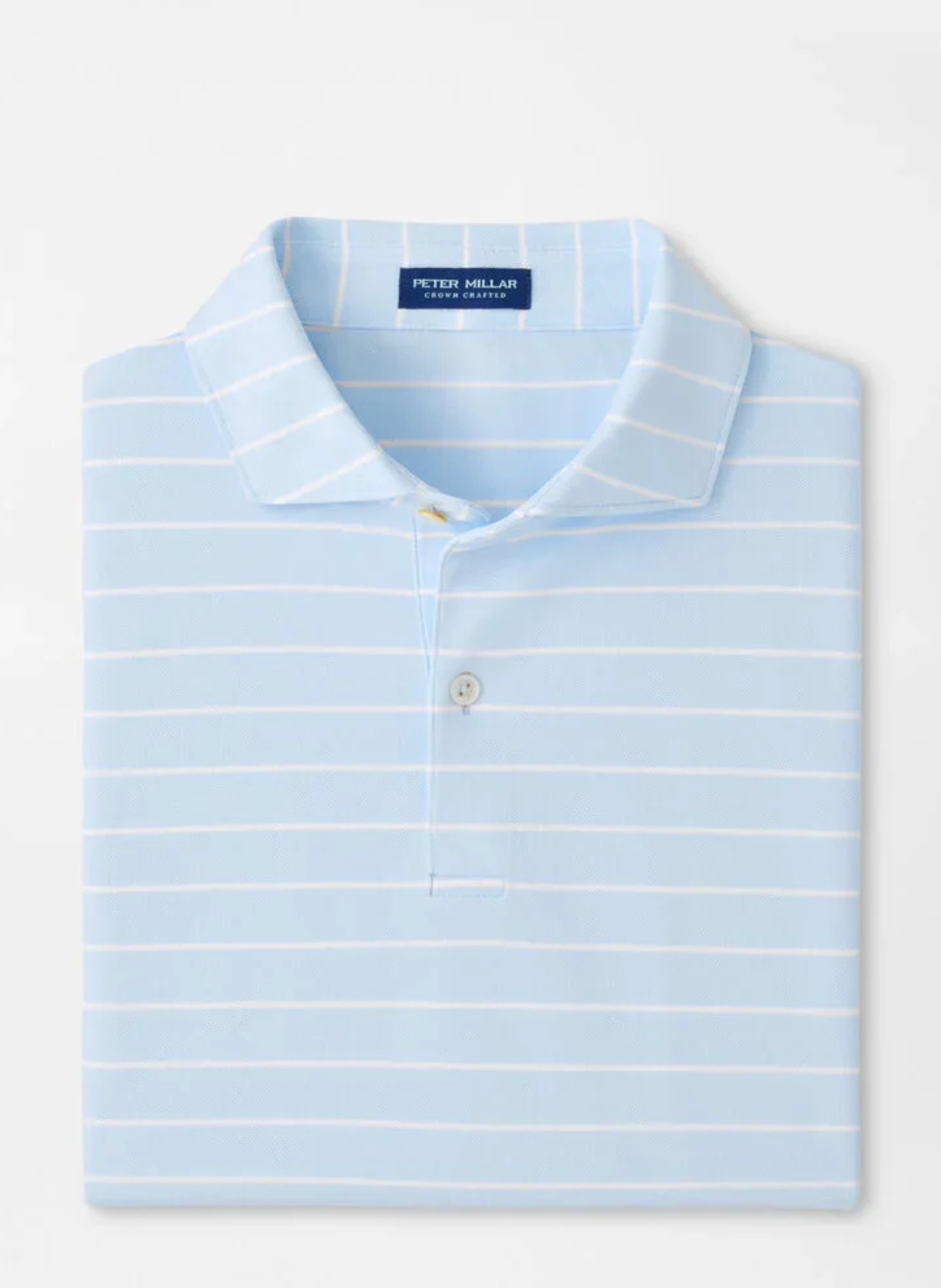 Tempo Performance Mesh Polo In White/Blue Brisk