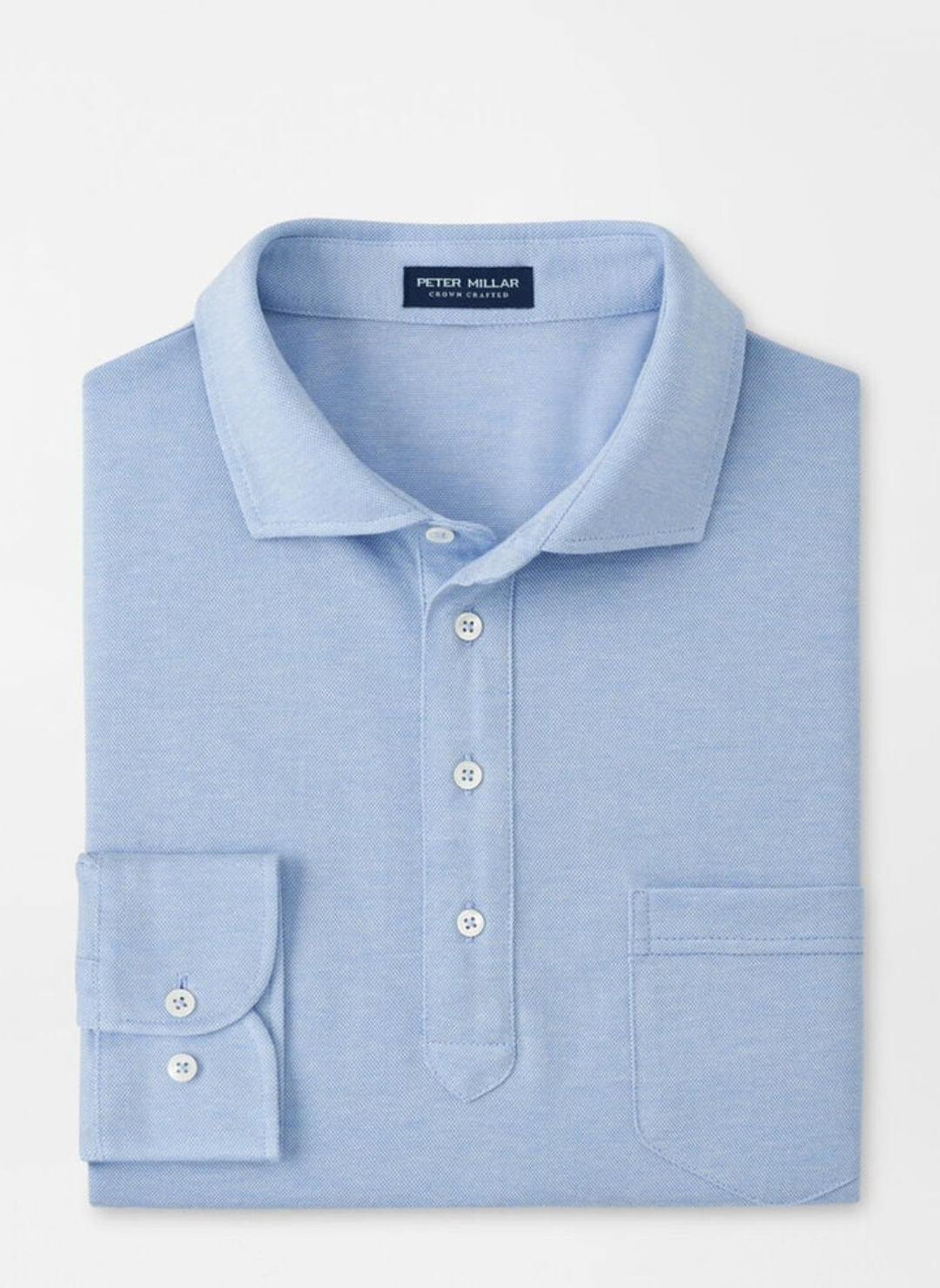 Peter Millar Amble Long-Sleeve Cotton Cashmere Polo In Blue Frost