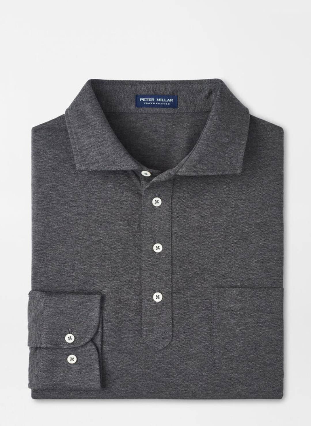 Peter Millar Amble Long-Sleeve Cotton Cashmere Polo In Charcoal