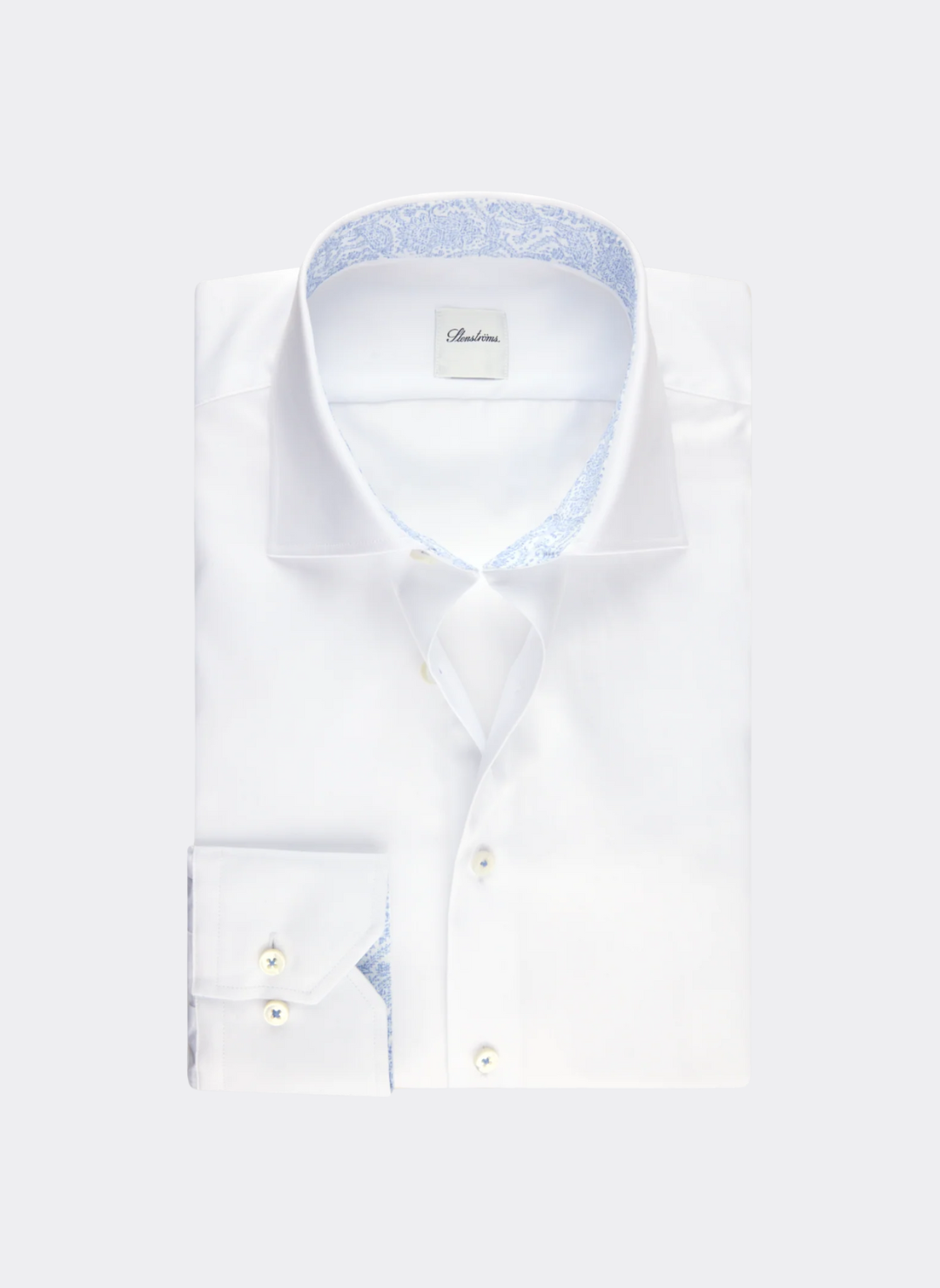 Stenströms White Twill Shirt with Floral Contrast Collar