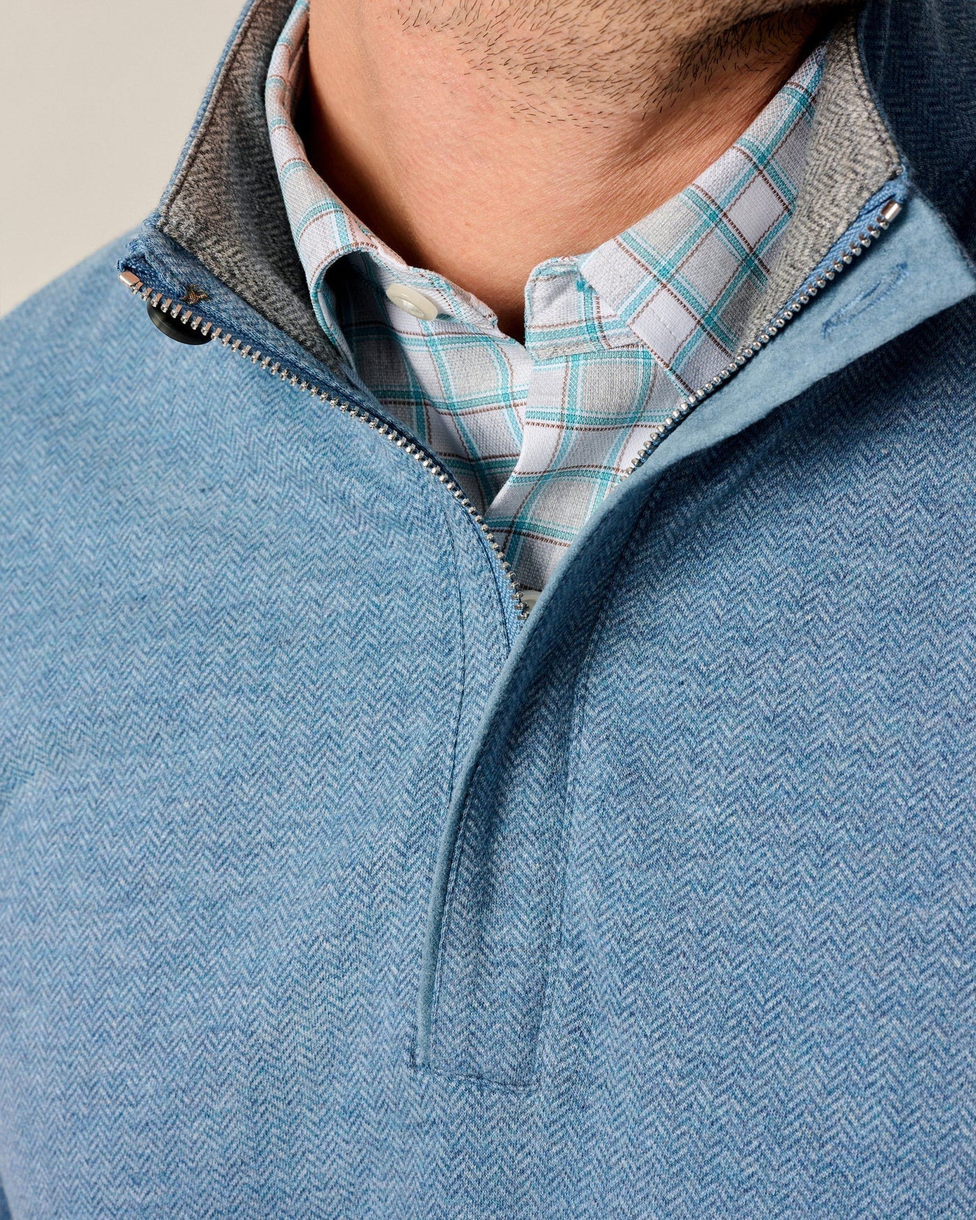 Taking cues from classic sportswear, this 1/4 zip is knit with a luxe blend of cotton, cashmere and stretch in a herringbone pattern that your finest sportcoats would kill for. For the true garment aficianados we used a circle knit which really elevates the feel and finished the piece with alcantara suede trim—a favorite of ours that is often found in sportscar interiors.