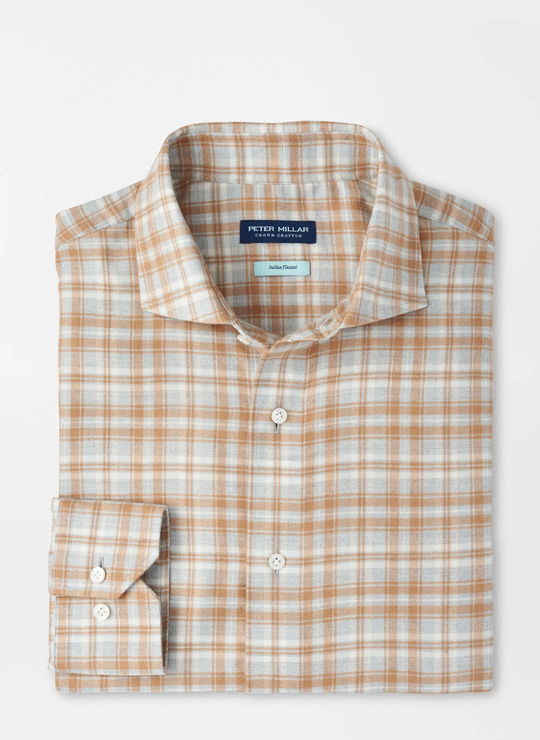 Peter Millar Big Bear Performance Flannel Sport Shirt In Poplar Brown