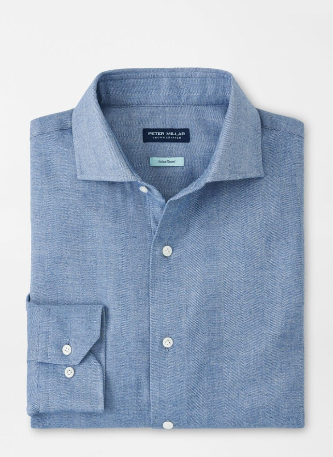Peter Millar Whitecap Performance Flannel Sport Shirt In Blue Haze