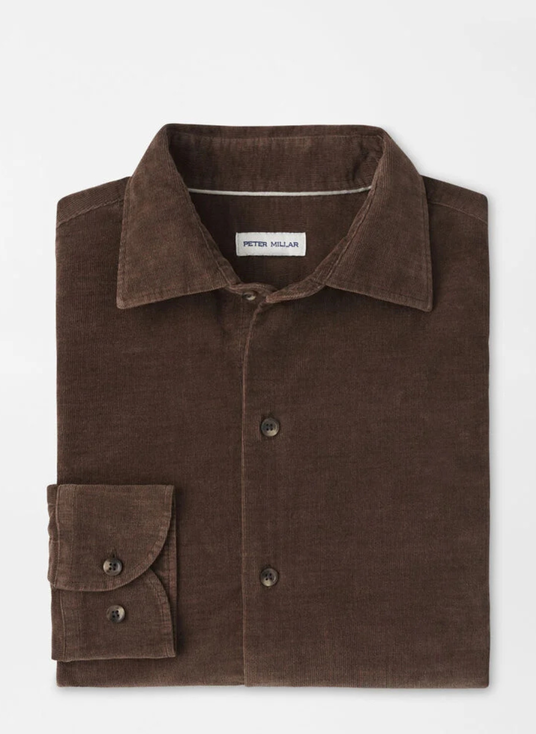 Peter Millar Aspen Cotton Cashmere Corduroy Sport Shirt in French Press