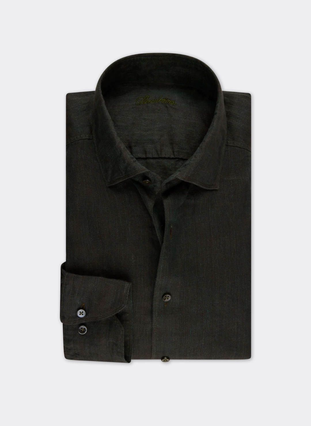 Crafted from pure linen, this Stenströms shirt exemplifies understated elegance with its rich dark green hue. The spread collar frames the face with refined sophistication, while lustrous mother of pearl buttons add a touch of timeless luxury. Breathable linen ensures comfort throughout warm seasons, making this a versatile essential for the discerning wardrobe. Perfect for elevated casual wear or layered sophistication.