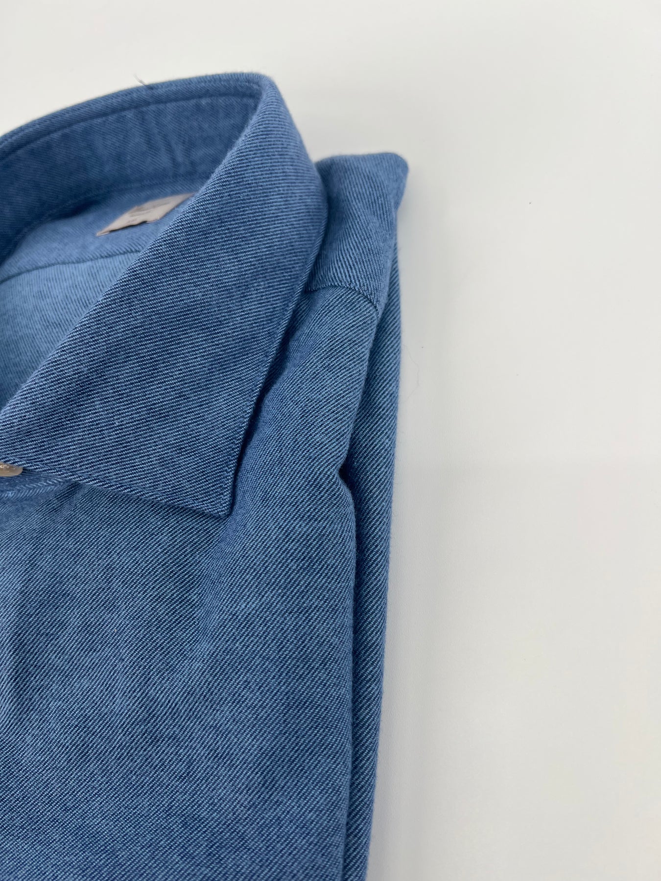 This flannel shirt is made of twofold cotton. The shirt is detailed with mother of pearl buttons, single cuffs and a cut away collar.