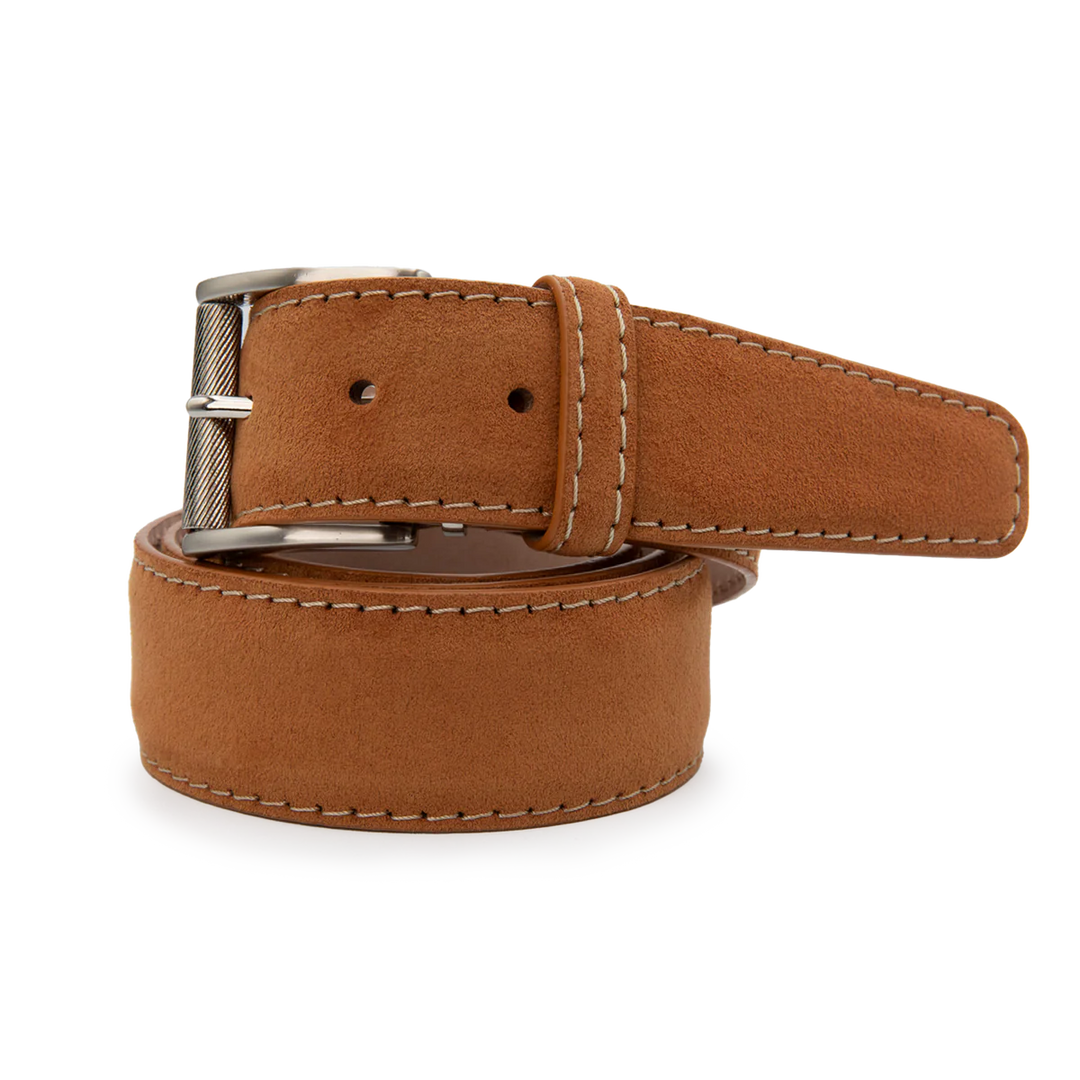 Alcantara Belt - Chestnut w/ Beige Stitch