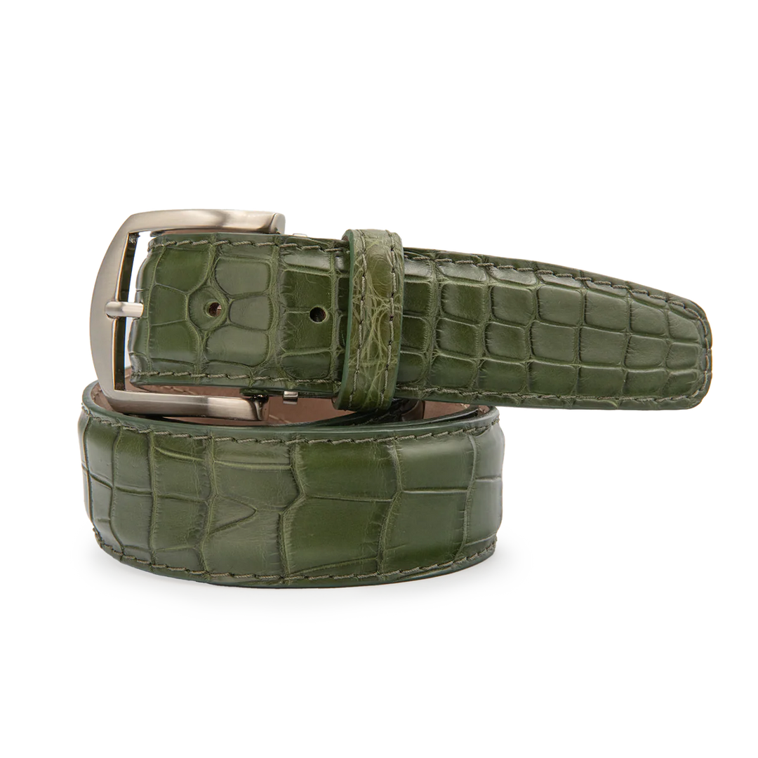 American Alligator Belt - Olive w/ Matching Stitch