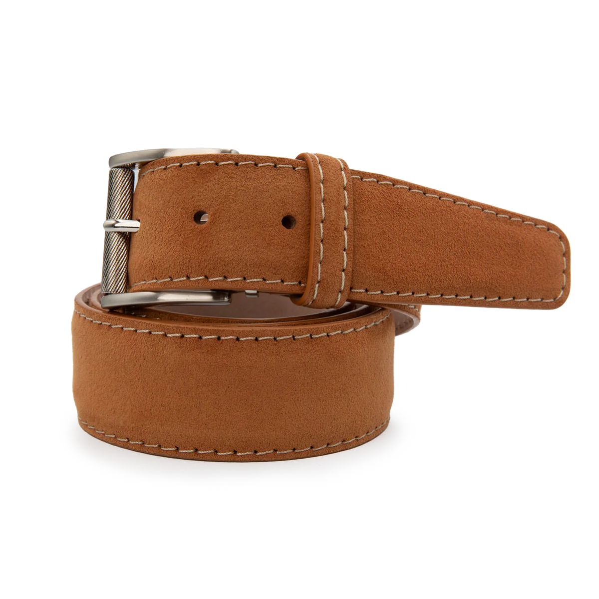 Alcantara Belt - Chestnut w/ Beige Stitch